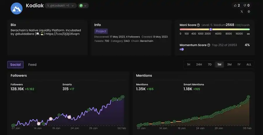 操作建议:等待积分系统的上线并提供流动性。该项目没有社交活动,角色无法通过农场化方式获得。你可以通过像 EtherFi 这样的提供者将资金存入流动性池,这样可以为多个项目(包括 Kodiak)赚取积分。