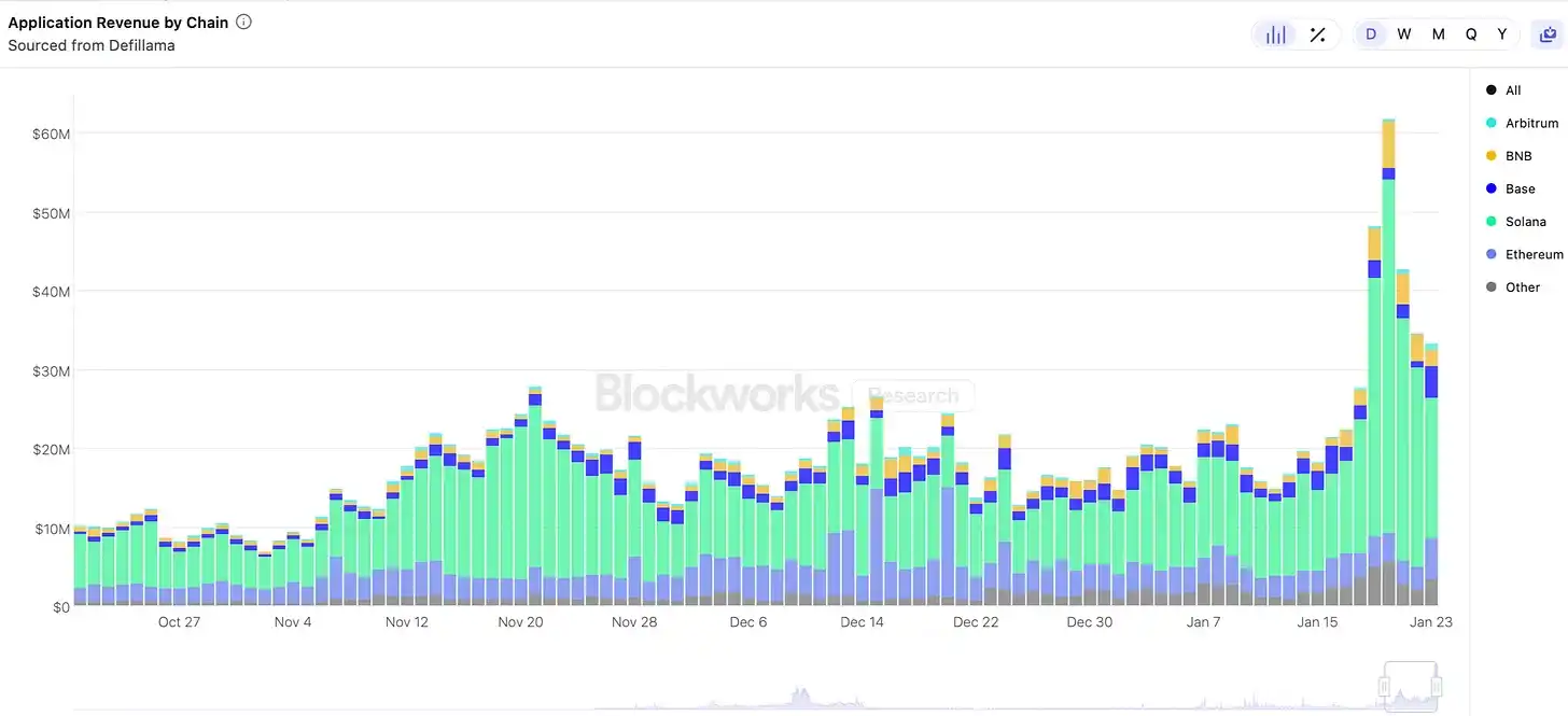 这支持了这样一种观点:DeFi 用户有不同的类别。虽然 Memecoin 交易者越来越多地涌向 Solana,但大量资金依然留在以太坊上。引用 REV 或 DEX 交易量作为 Solana 在 DeFi 中占主导地位的证据,具有误导性。