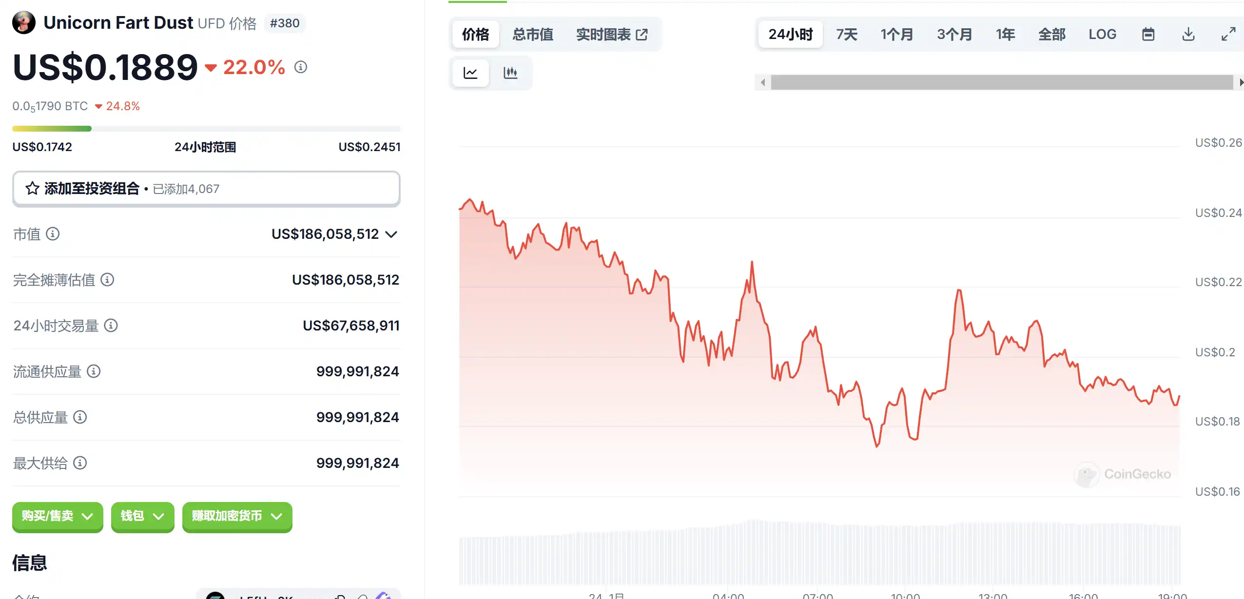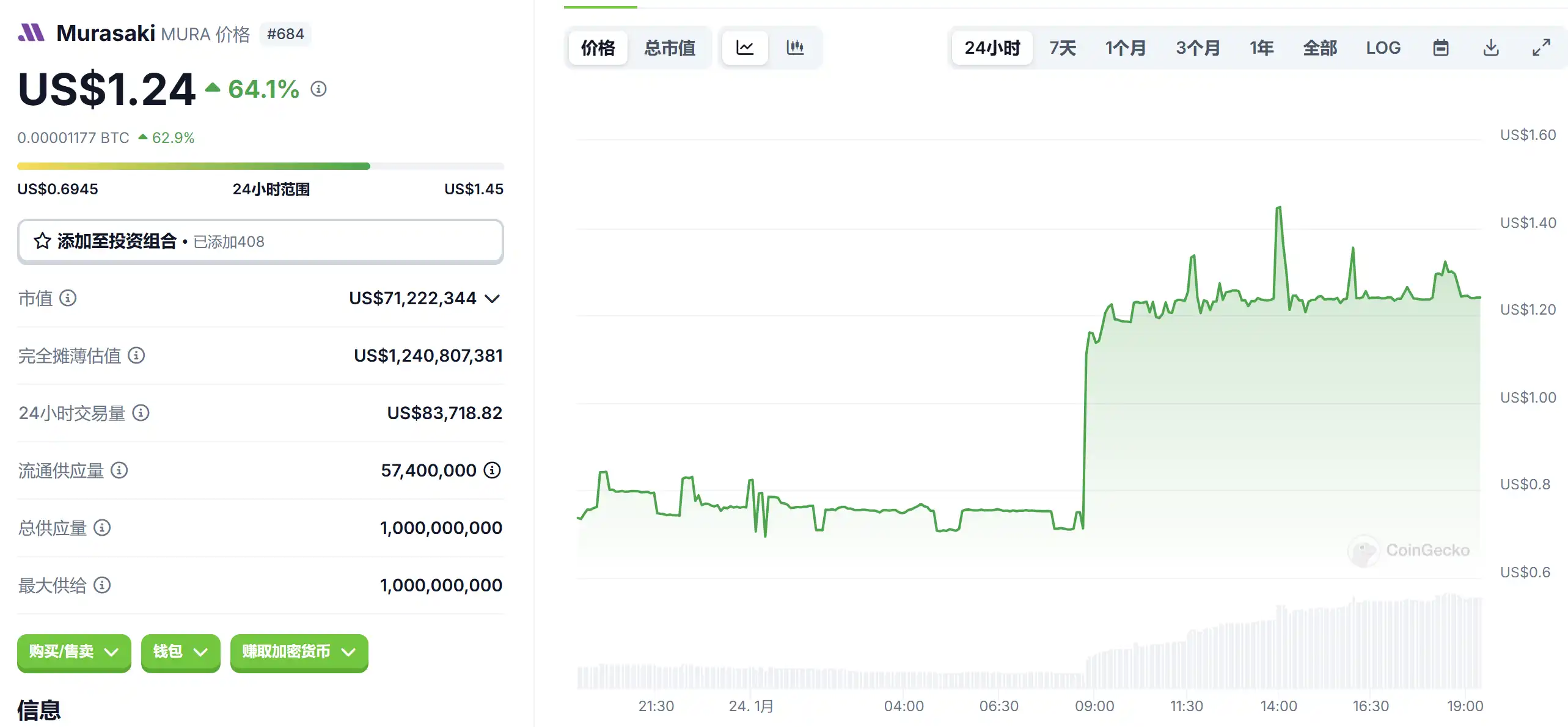 1 月 24 日代币波动情况,按交易量筛选并排列