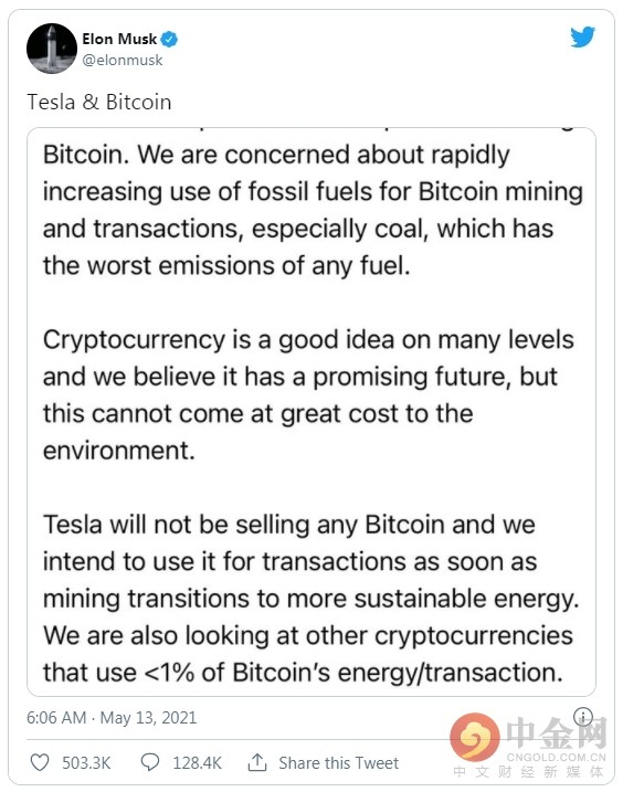 特斯拉停止允许购买比特币的主要原因,正如埃隆·马斯克(Elon Musk)在上周三的推文中所说,是当前采矿作业对环境的影响。